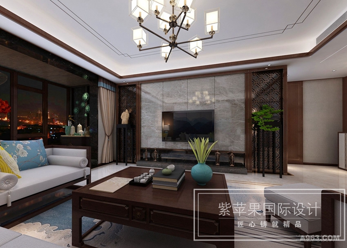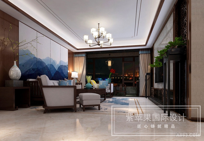 无锡紫苹果装饰新中式装修效果图案例赏析: