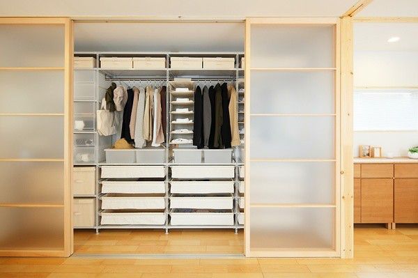 儿童房,衣物大多可以叠放,可以折起放在抽屉或隔板内,最好还要在衣柜下部设置玩具区,方便孩子打开柜门拿放玩具。