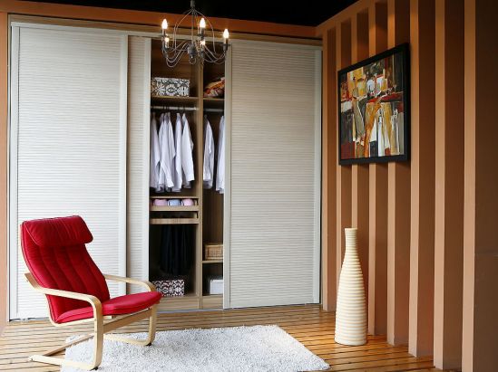 老人房,隔板等叠放衣物的空间要多,而且不宜太高或太低,防止老人踮脚弯腰等,如果有条件的话,衣柜上层可以安装升降衣架。