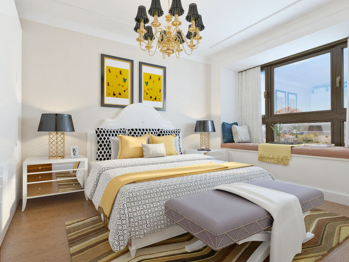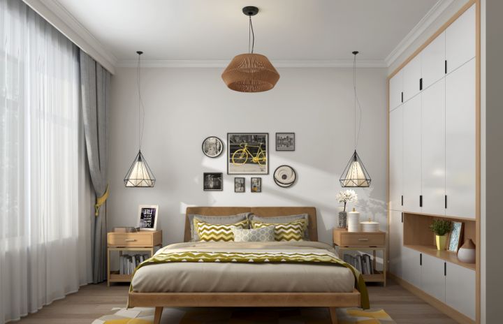 (2)卧室宽度在3.2米以内的话建议选择1.5米宽的双人床,大于3,5米选择1.8米的双人床。