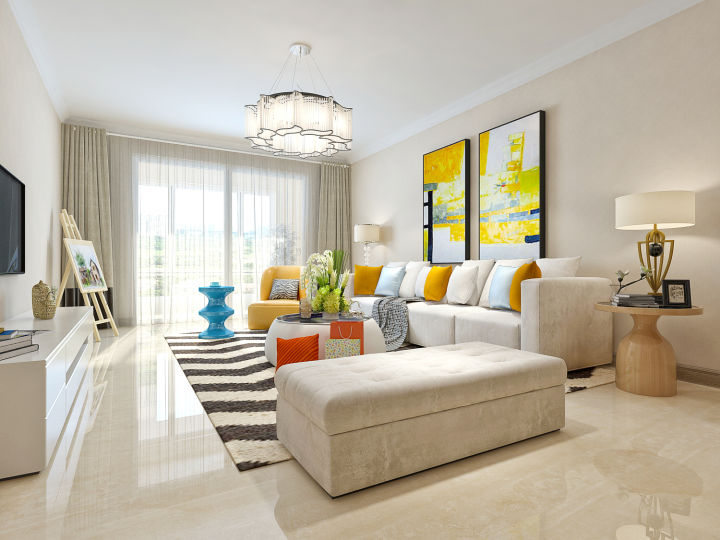 (1)室内配色,最好只有一种主色调,然后选一到两种辅助色对比色,用来调节客厅的颜色纯度和明度的变化,但是对比色的面积和种类要少,否则显得又乱又廉价。
