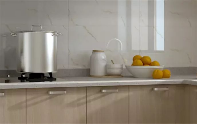厨房台面最好使用石英石台面,硬度高、防渗透、耐刮、耐磨并且环保无辐射,可与食物直接接触。而人造石台面不耐高低温,硬度低,使用一段时间后,表面会有划痕;大理石台面不易做造型,容易吸油渗色,不易清洗。
