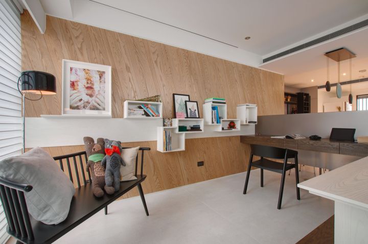 如果客厅还要兼做工作区,就要考虑书桌书柜的位置;