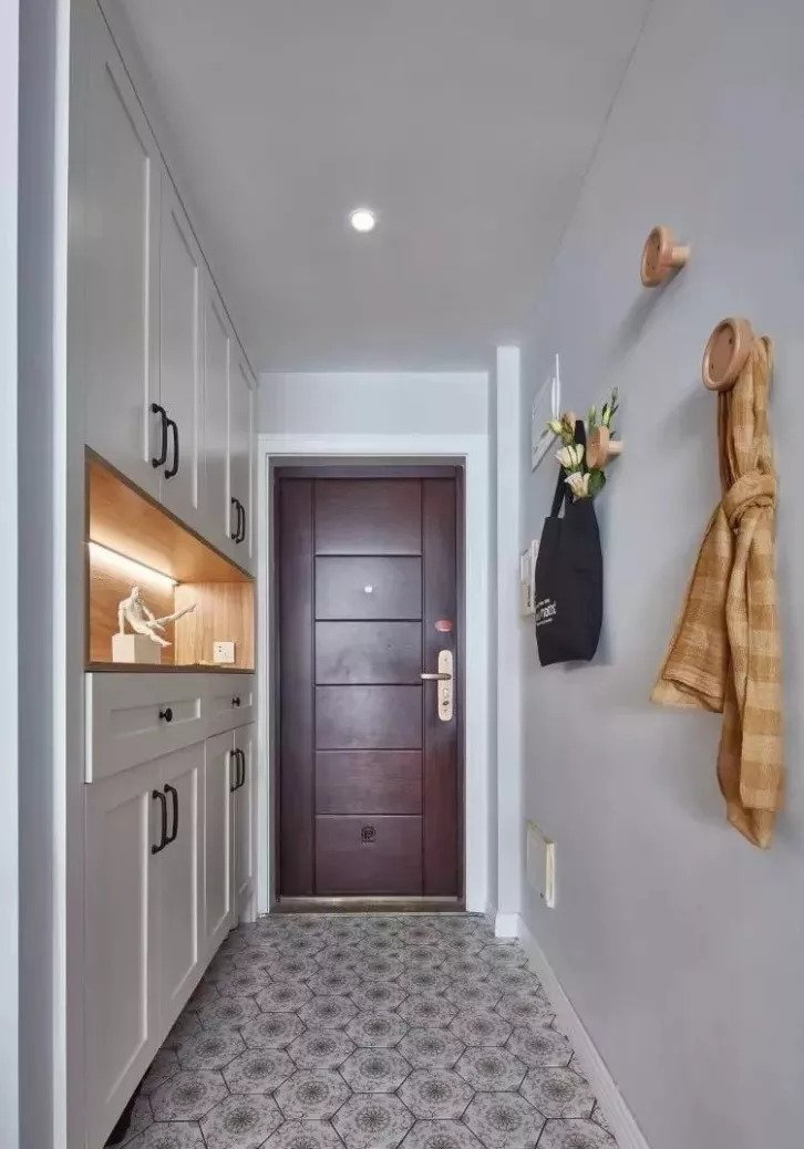 玄关柜更重视的是实用,上面空间装不常穿的鞋子、下层空间装当季鞋子,中间放钥匙等小物件,目前绝大多数家庭采用的都是这种组合。