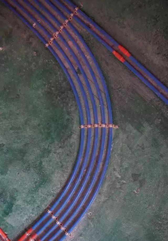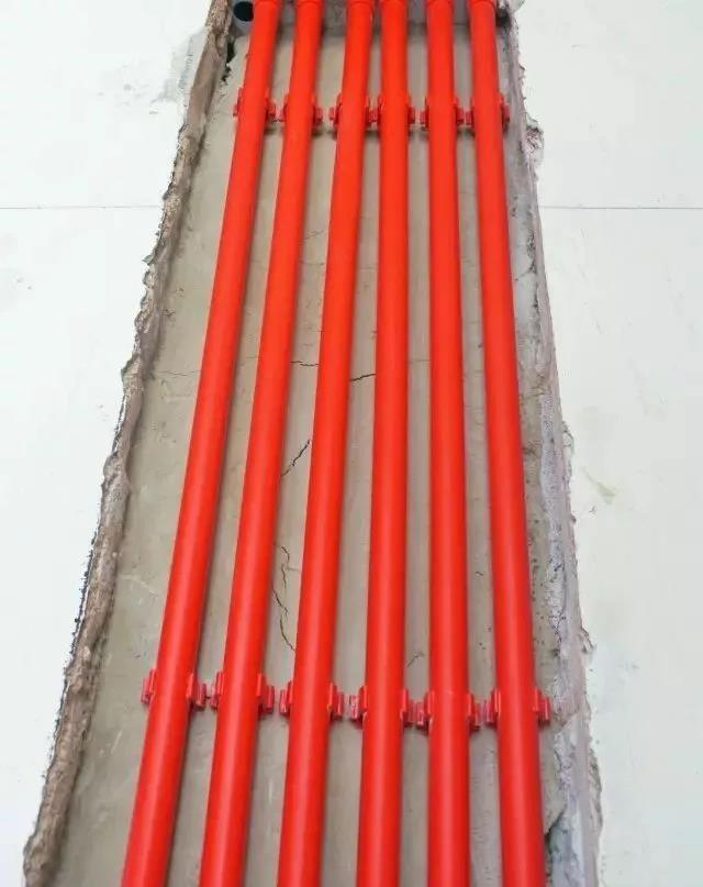 潮湿区域强电不得走地面,特殊情况在地面布线,线管直接须加PVC专用胶水,并包裹防水电工胶布3-5圈(红管包蓝色胶布,蓝管包红色胶布),过道处地面管线用水泥砂浆“八“字护坡保护。