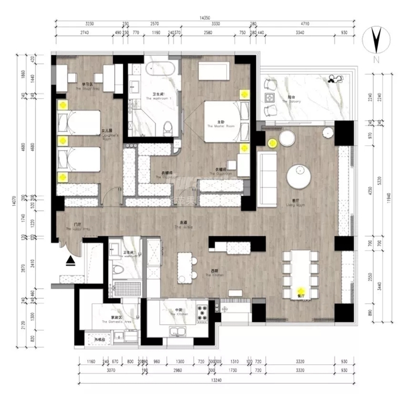 本案业主对生活品质有着极高的要求,带着对美好的新生活的期盼。摒除嘈杂的尘务,由衷盼望家就是最舒服的港湾。朝南的美景与温煦留给客厅、主卧室与小孩房,感受四时流转间的风光绮丽,无形引进自然能量调剂身心,天人相应间无为而生;朝北的空灵留给开放式厨房、餐厅,视野大阔之余胸怀随之开敞,静候心灵的归零与重启。