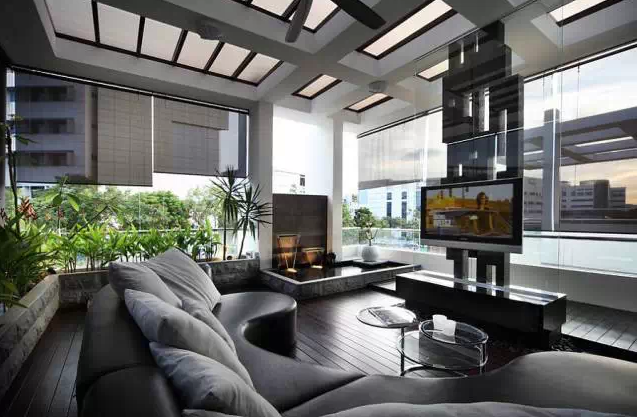 无法选择奢侈的瀑布装置时,还有很多方法可以给你提供一个水装置。在地板上安置一个巨大的玻璃缸,放上几尾鲤,把缸底打通,以便换水。