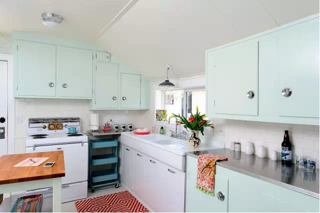 如果糖果色看起来太甜,可以选择薄荷绿或墨兰,各种颜色的搭配都可以调制出不同的效果,甚至从现代到复古都可以表现出来。