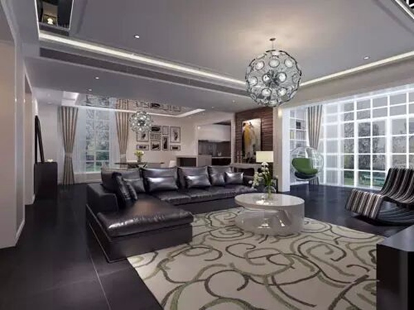 客厅与餐厅之间的隔断,选择的是一个非常具有东南亚特色的镂空屏风,在保证将客餐厅分区功能的同时,又能保持空气的流通。作为高端别墅装修软装设计的造型,屏风、茶几、沙发的款式都是一致的,保证了软装设计的整体完整性。