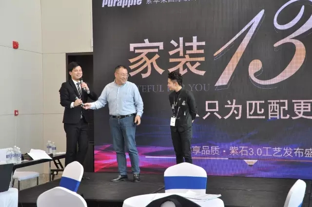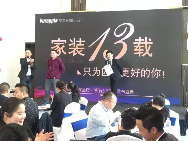 紫苹果周年庆典,装修设计,施工大让利,直享紫苹果合作的品牌材料商主材特供价。业主纷纷下定订单,设计师和客户一起上台致词。