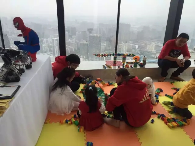 儿童娱乐区,小业主们聚在一起跟小机器人还有乐高玩具玩。瞧!他们与工作人员一起玩的多开心~