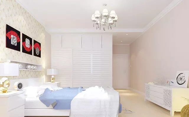 卧室的功能主要是睡眠休息,属私人空间,不向客人开放,所以卧室装修不必有过多的造型,通常也不需吊顶,墙壁的处理越简洁越好,通常刷乳胶漆即可,床头上的墙壁可适当做点造型和点缀。卧室的壁饰不宜过多,还应与墙壁材料和家具搭配得当。无锡别墅装修中卧室的风格与情调主要不是由墙、地、顶等硬装修来决定的,而是由窗帘、床罩、衣橱等软装饰决定的,它们面积很大,它们的图案、色彩往往主宰了卧室的格调,成为卧室的主旋律。