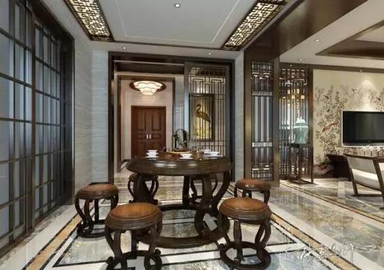 3、装饰色彩:新中式风格的家具多以深色为主,墙面色彩搭配:一是以苏州园林和京城民宅的黑、白、灰色为基调;二是在黑、白、灰基础上以皇家住宅的红、黄、蓝、绿等作为局部色彩。