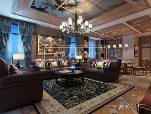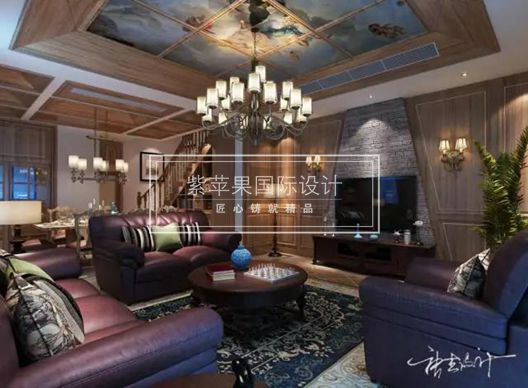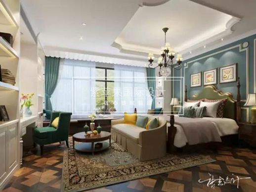 如果说古典美式风格线条复杂、色彩低沉,本案设计风格则在古典欧式风格的基础上,以简约的线条代替复杂的花纹,采用更为明快清新的颜色,既保留了古典欧式的典雅与豪华,又更适应现代生活的悠闲与舒适。