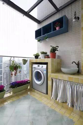 这个阳台担负起了洗衣间的功能,同时也具有盆栽美化的功能。