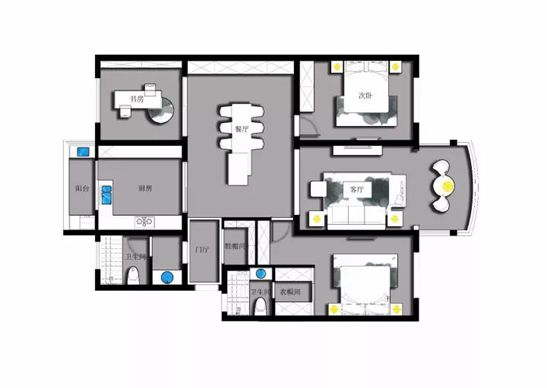 3. 主卧格局改变,增加主卧衣帽间功能。调整空间比例,让生活更舒适