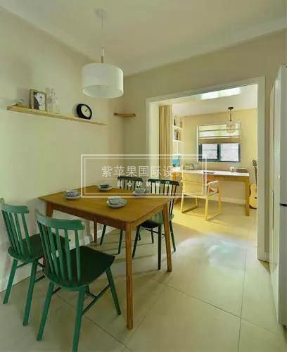 餐厅椅子也挑选了活力绿色,跳跃而又不夸张。