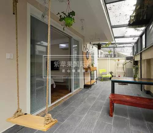 露台用玻璃封起来,也算是一个简单的户外游乐园了。