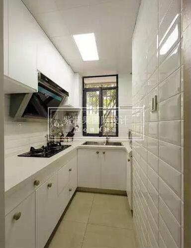 狭长的厨房全部采用白色主材,显得空间明亮整洁。