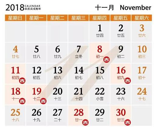 公元2018年11月18日 农历10月(小)11日 星期日 天蝎座 农历戊戌木年 十月小 十一日