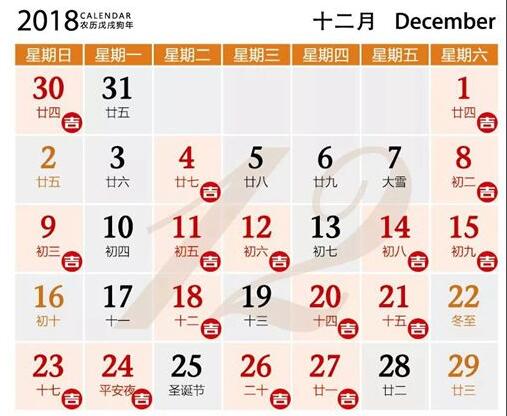 公元2018年12月08日 农历11月(大)02日 星期六 射手座 农历戊戌木年 十一月大 初二日