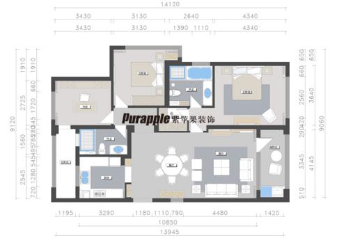 我们的需求:注重比较细致的功能区域(独立多功能室、衣帽间、休闲区等),且在满足功能的前提下,希望在保留整个空间区域的情况下做适当的修改,使得整体布局更趋合理化;