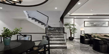 今天分享的是华夏世纪景园450平别墅装修,本案中,设计师东方韵味結合现代简约,用木紋、线条、石材等材质,造意出具有東方韵味的空间质感,结合现代中式的家具,共同形成生活之艺术。以新东方风格形塑,将中国古典窗花重新解构创作,融入自然语汇,辅以适当的留白,让人文气息流露其中,宛如水墨风景画作,内敛且富饶韵