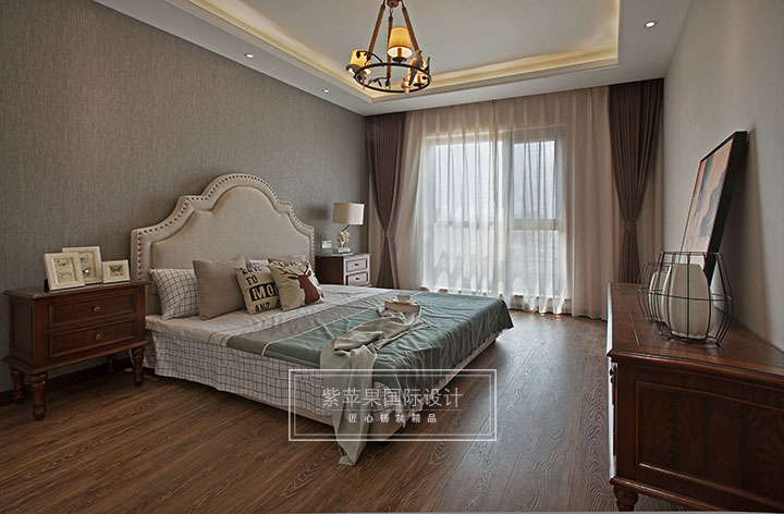 客厅餐厅及楼上主人的独立生活空间整体风格都是充满个性的工业风,而长辈房和儿童房却贴心考虑到住者的年龄和心理需求。长辈房整体变化为温馨素雅的浅色,家具、床品乃至灯饰皆有变化,触感更加细致贴心。而儿童房超级队长的主题风格充满童趣和天真,十分赢得家中宝贝喜欢。