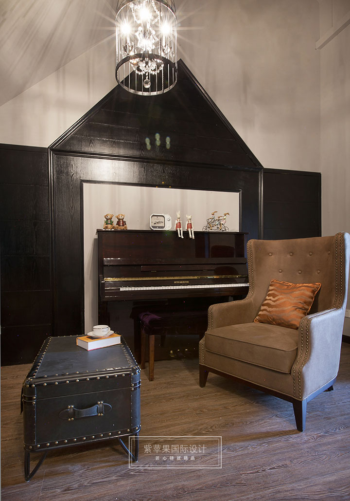 工业风居住空间如果不融入柔和的元素,太多的裸露会让人感受不到生活的精致,所以各种布艺、皮质、木质家具的填充,精致挂画、装饰品的加入,精致灯饰的点缀,就使得工业风味获得平衡。本案中的鹿角灯饰、金属灯、创意挂画、美式皮质沙发、木质家具都格外恰当,软化了空间,增加了精致感。